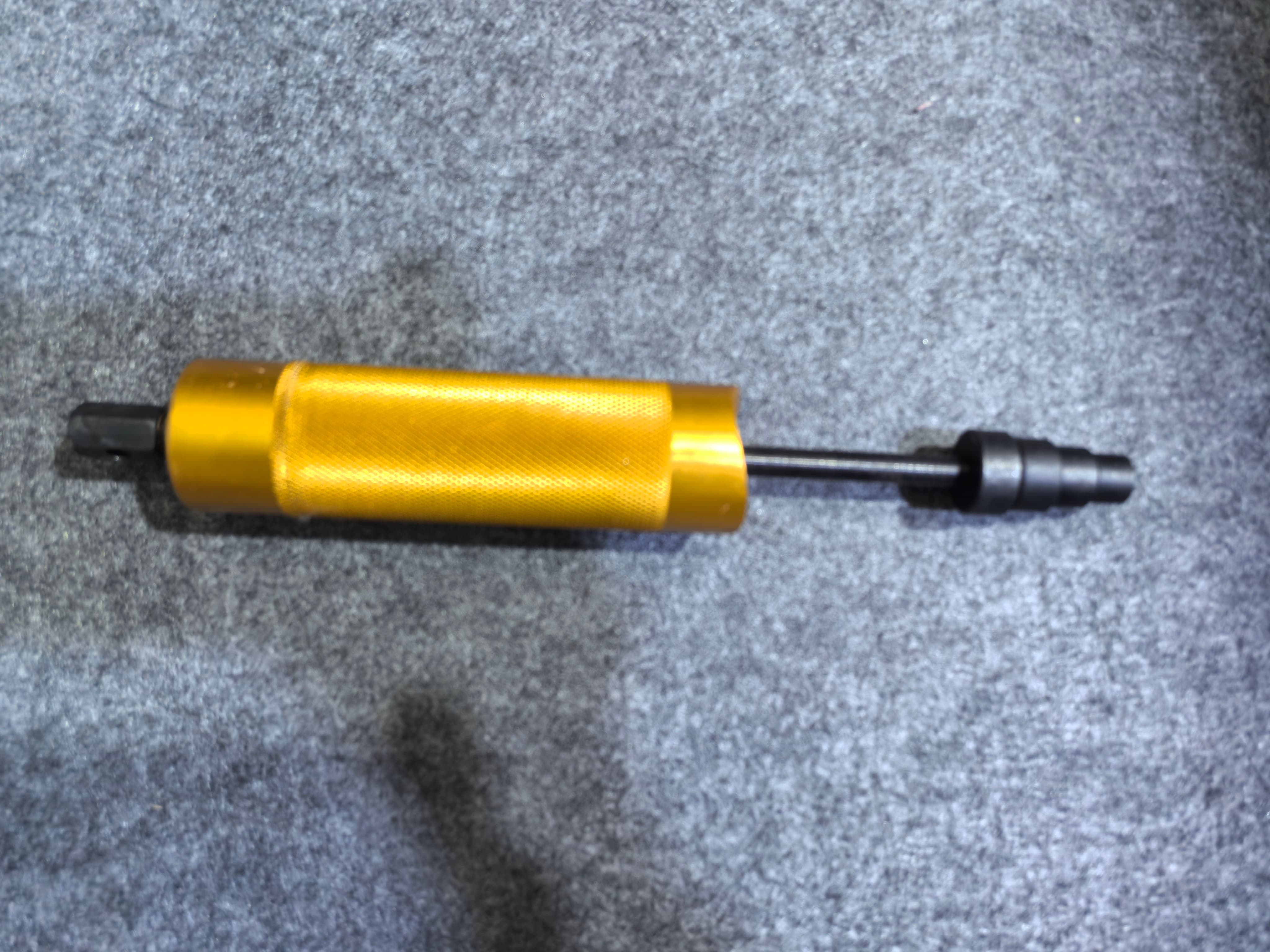 * And Insert the pulling pin into the pin hole on the opposite side of the piston, so that it travels through the centre of the gudgeon pin.