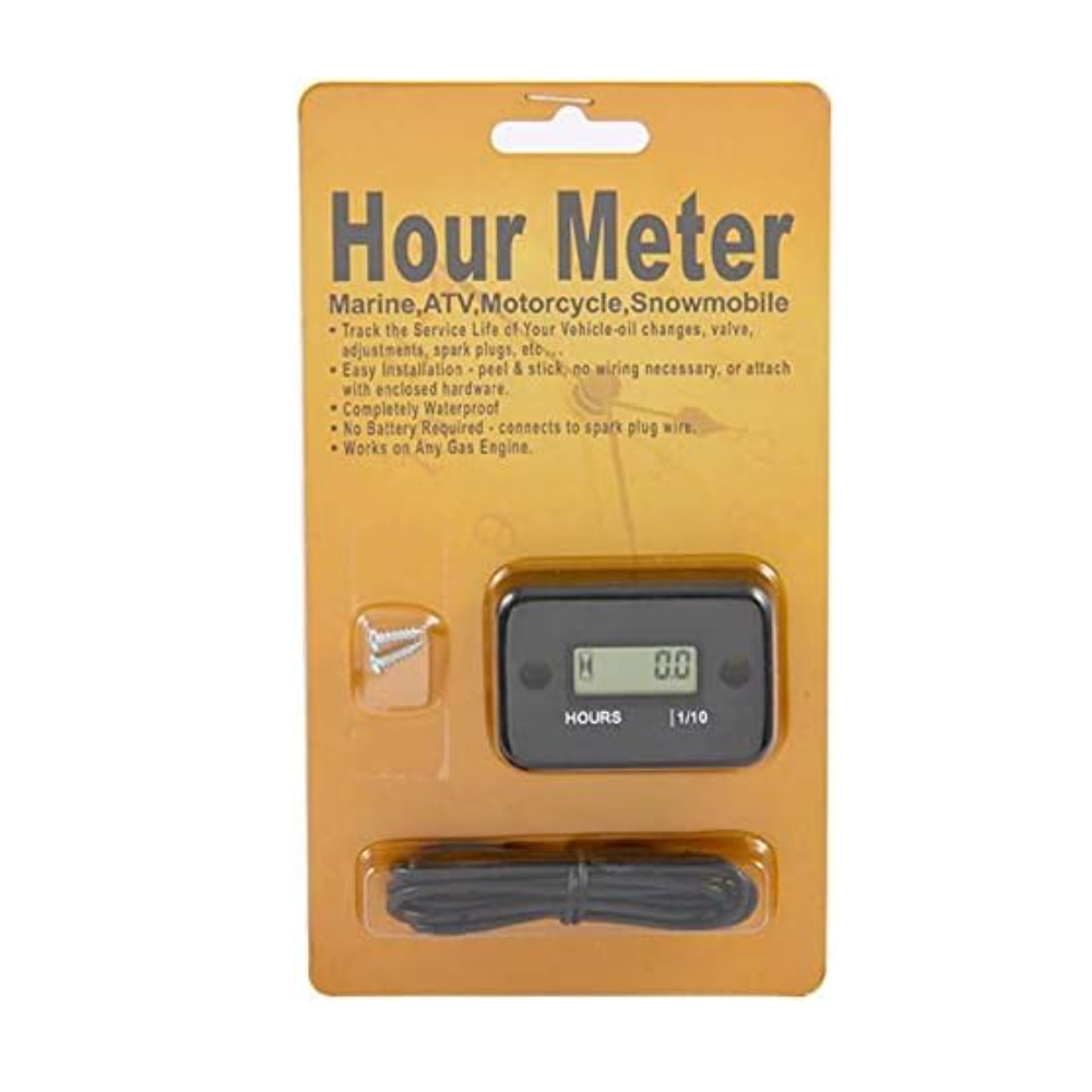 APPLICATION---- Inductive Hour Meter for most gas engine,in instance:Lawn mower, ATV, Motorcycle, Boat, Dirt Ski Track the Service Life of Your Vehicle-Oil Changes, Valve, Adjustments and etc