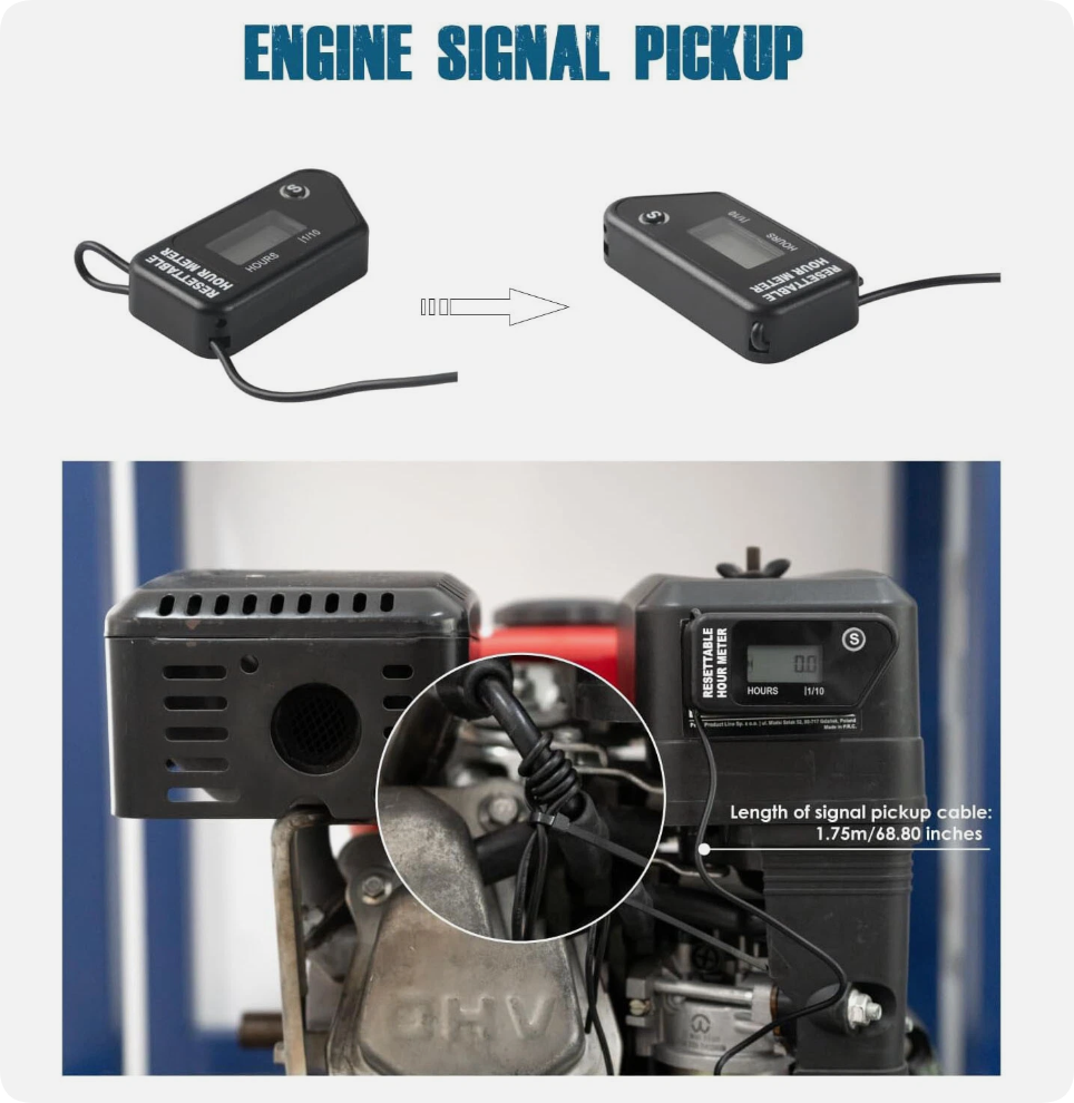 Description: Hour Meter, Maintenance Reminder Function, Data Storage, Lawn Mower Chainsaw, Dirt Bike, Motorcycle, Marine High Pressure Washer