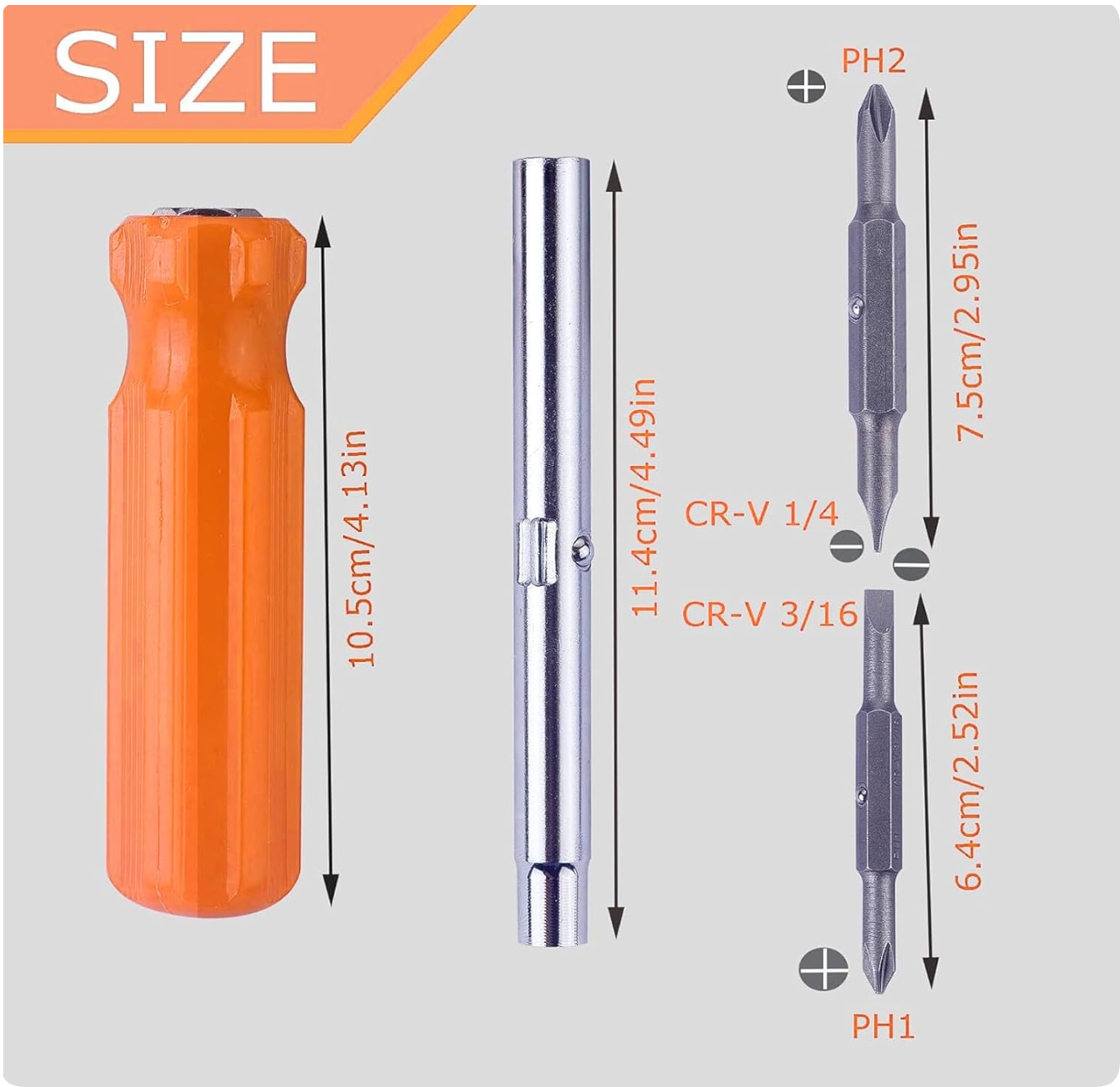• ✔One compact and versatile tool gives you access to 4 screwdriver sizes and 2 nut driver sizes