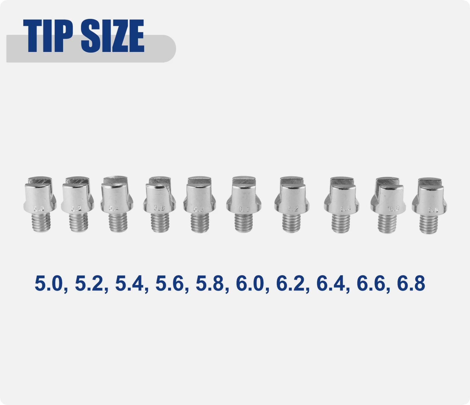 * With the most used sizes 5.0, 5.2, 5.4, 5.6, 5.8, 6.0, 6.2, 6.4, 6.6, & 6.8mm.